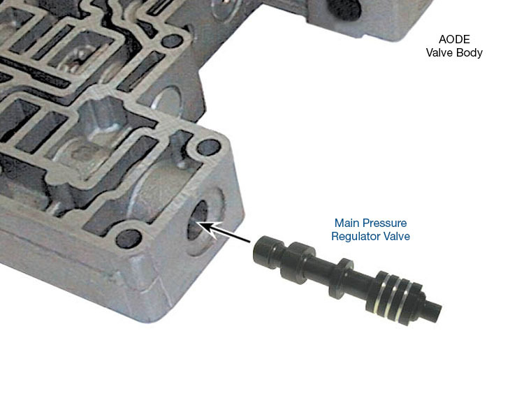 Pressure Regulator Valve AODE 96-up Fits '96-later. Vehicles with 4R70E, 4R70W, 4R75E, 4R75W and AODE transmissions often have erratic line pressure, poor line rise and/or throttle-sensitive buzz. This can result in harsh or soft shifts and band/clutch failure as well as other driveability concerns. Worn pressure regulator valve spools allowing pressure escape are a common problem in these units. Installing Sonnax main pressure regulator valve 76948-09 restores normal line pressure operation in all ranges. If bore is excessively worn, install Sonnax oversized pressure regulator and boost valve kit 76948-17K. Sonnax valve replaces both styles of OE valve found in '96-later units. Hardcoat anodized aluminum valve combats premature wear Annular grooves help center valve in bore to reduce side-loading NOTE: '91–'95 PR valve and '96-later PR valve designs are not interchangeable. For '91–'95 PR valve, see 76948-01.