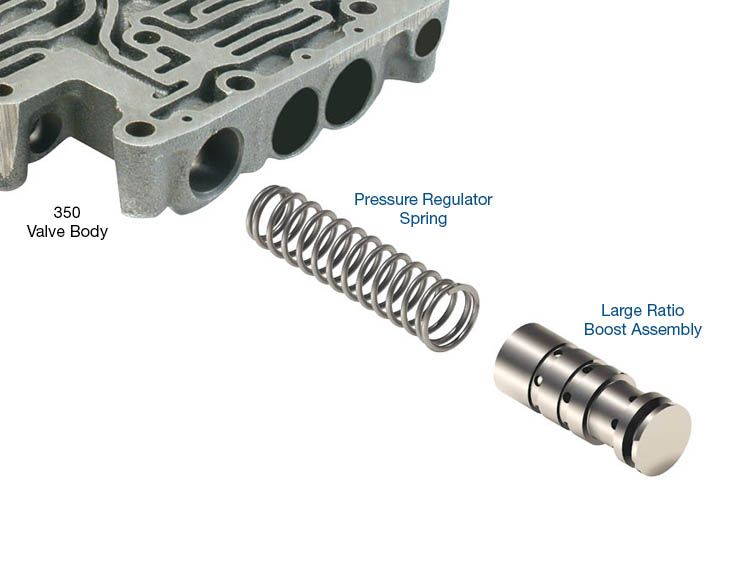 Line Press. Booster TH350 Large Ratio Boost Assembly Pressure Regulator Spring Sonnax hydraulic line pressure booster kits contain stronger pressure regulator springs and large ratio boost valves designed to work together to provide progressive pressure increases as driving conditions become more demanding. Our pressure regulator springs are approximately 10% stronger than OE and more conservative in impact than other aftermarket kit springs. Large ratio boost valves provide higher pressure incrementally and when it is needed the most. The combination of these springs and valves in a Sonnax kit gives you the best of both worlds: a modest pressure increase at the low end, with a high-end pressure that is equal to or greater than that of other aftermarket kit springs. Achieve shorter shifts and increased torque capacity without creating low-speed harshness Improved band and clutch holding capacity for increased durability Progressive pressure increase as driving conditions become more demanding All the benefits of increased line pressure without overloading the pump at idle Simple and affordable drop-in solution with no special tools or reaming required