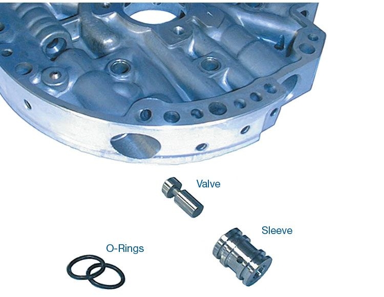 Vehicles with GM 200-4R and 4L60 transmissions often have problems with poor Reverse boost or upshifts in manual low. These are generally caused by a worn Reverse boost valve sleeve or wear at the pump body. Sonnax offers a larger ratio (.283") Reverse boost valve kit K77898 to restore the hydraulic integrity of the assembly.