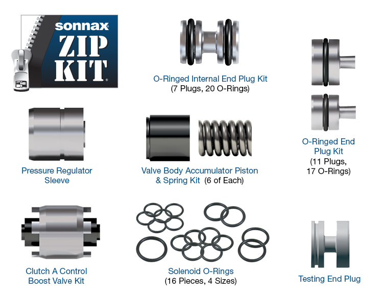 Only for use in applications with a 053 separator plate. Sonnax Zip Kit ZF6-053-ZIP targets the root cause of multiple complaints by sealing the critical circuit pressure losses in the ZF6HP19/26/32 (Generation 1) valve bodies with a 053 separator plate. The kit contains uniquely designed parts to prevent the loss of pressures within the main line, solenoid regulator, reverse, clutch control and solenoid apply circuits with no special tools required. The Zip Kit quick guide provides clear and easy instructions on one sheet to get the unit sealed up and back on the road fast. In addition to general rebuilding tips and technical information, the technical booklet included in this kit contains vacuum testing and additional repair options for higher mileage units or for repairing specific complaints which are beyond the scope of this kit. • No reaming required• Installs quickly with no special tools required • Uniquely designed parts address root causes of valve body complaints by sealing critical pressure circuits• Detailed technical booklet included with in-depth rebuild and inspection tips for comprehensive valve body repair NOTE: This Zip Kit ZF6-053-ZIP is designed for Generation 1 applications with a 053 separator plate only. Separate Zip Kits, ZF6-6R60-ZIP (for ZF6HP19/26/32 Generation 1 and Ford 6R60, 6R75, 6R80) and ZF6-GEN2-ZIP (for ZF6HP21/28/34 Generation 2) are available for other applications. To verify valve bodies, see this identification guide for further details.