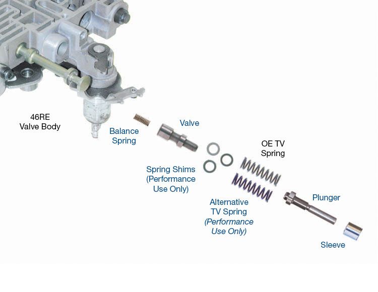 TV-Kit 42RE, 46RE OS • Plunger • Sleeve • Valve • Alternative TV Spring (Performance use only) • Spring Shims (3) (Pe…