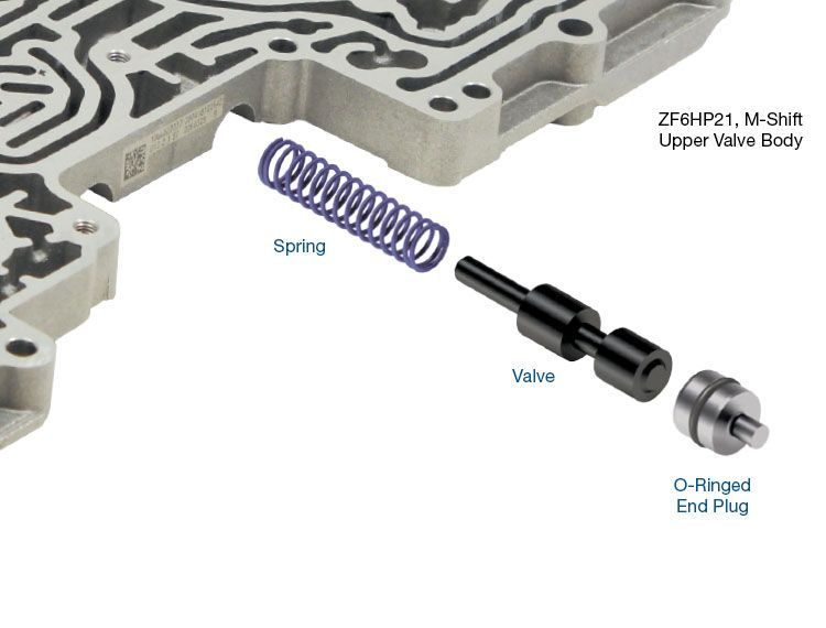 Shift valve 3 kit OS 6HP21/28 • Valve • Spring • End Plug • O-Rings (2) 1 Extra This kit fits M-shift versions of ZF6…