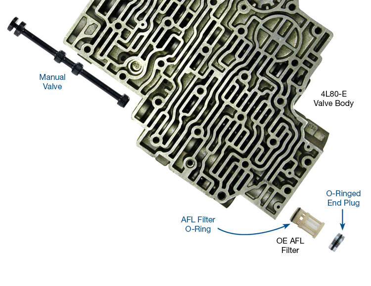 Valvekit 4L80E Valve AFL Filter End Plug End Plug O-Ring AFL Filter O-Ring The OE manual valve in GM 4L80-E and 4L85-…