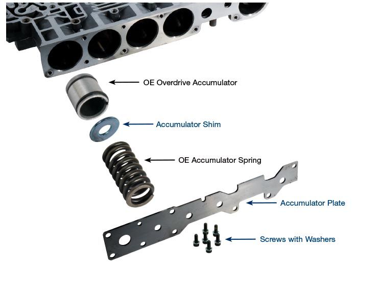 Accum.cover 45RFE Accumulator Plate Accumulator Shim Screws (6) Washers (6) Accumulator plate made from stronger, thi…