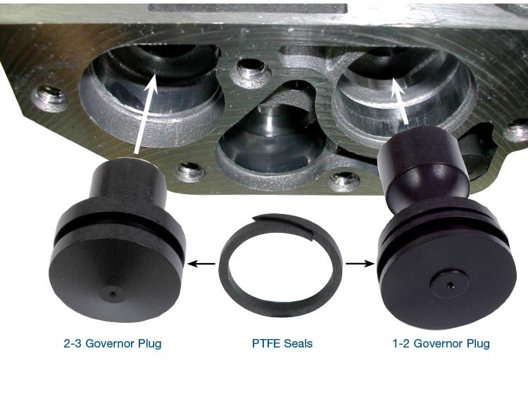 Governor bore plug kit 42RE, 46RE • 1-2 Governor Plug • 2-3 Governor Plug • PTFE Seals (3) • Kit provides improved sh…
