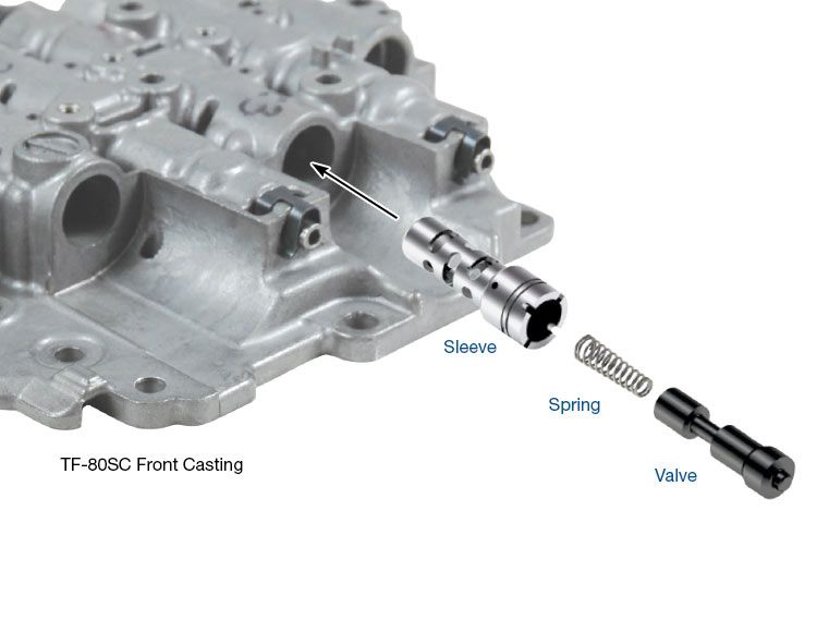 Sol.mod.valve TF80 [2] • Valve • Sleeve • Spring • End Plug Use in TF-81SC Only The Aisin AW TF-80/81SC solenoid modu…