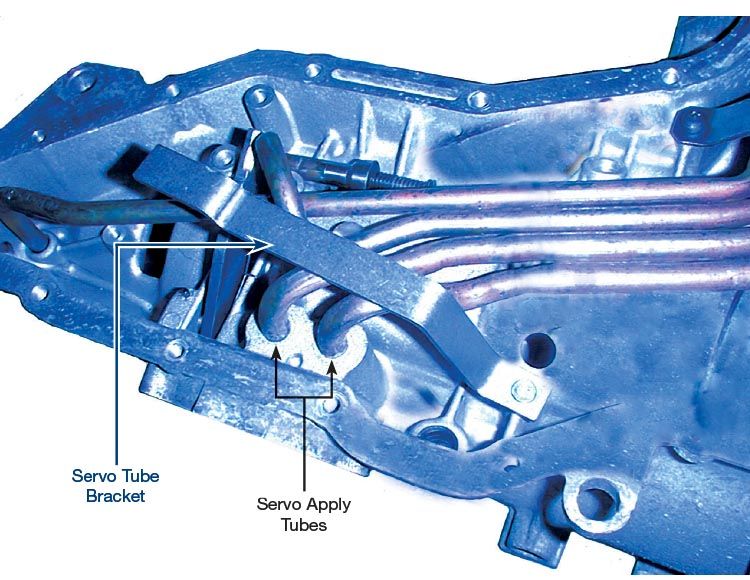 Bracket AXOD,AXODE,AX4S The servo tubes on AXOD & E units may walk off from the transmission case. This causes the se…