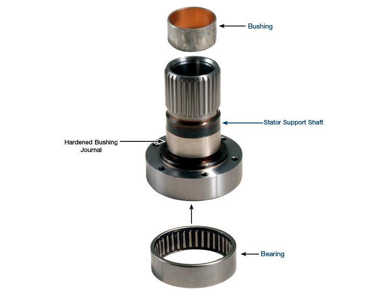 Stator support AXOD,AXODE,AX4N 1986-2003, Bushing & bearing already installed The soft cast iron OE shaft wears on th…